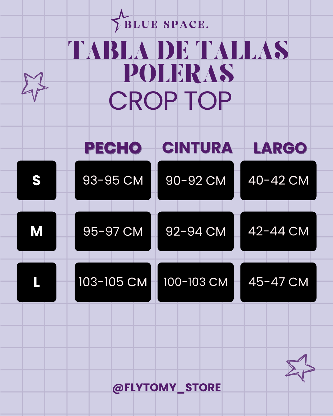 ♡ A continuación se encuentra la tabla de tallas. Recuerda que pueden variar levemente en centimetros.