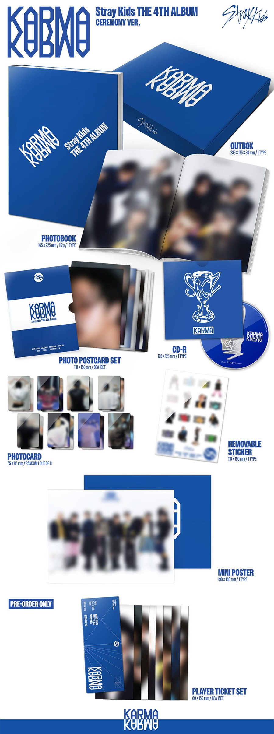 “KARMA” es el lanzamiento especial de Stray Kids, presentado en su versión CEREMONY/HOORAY VER. que captura la esencia poderosa y emocional del grupo. Este álbum celebra la dualidad entre luz y oscuridad presente en su narrativa musical, mostrando el viaje de los ocho integrantes a través de conceptos intensos, simbólicos y cargados de energía.